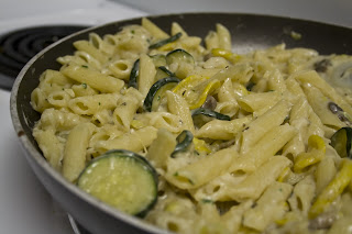 So, my boyfriend has this habit of getting home later than he plans. This happens quite frequently, at least 1-2 times if not more per week. When he gets home late, I don't feel like cooking anything that takes effort & time to make. & did I mention we live in the middle of nowhere--no running somewhere for a quick bite to eat (& who wants to spend $$ anyways?). So this is one of the times when I usually have at least a jar of pasta sauce & a couple different kinds of pasta on hand to whip up a quick batch of pasta for dinner. BO-RING.