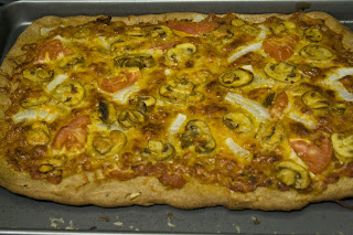I've been meaning to post this entry for awhile now and am now just getting around to posting it. The following recipe for homemade pizza can be altered in many ways to suit your tastes, and my boyfriend & I like this so much, its now our weekly Sunday dinner.